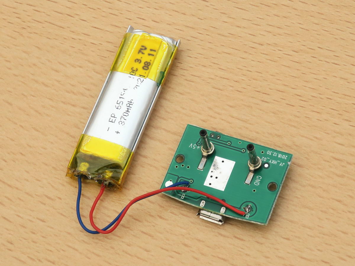 Аккумулятор для кейса я не покупал, а выковырял из использованного вейпа, любезно предоставленного одним знакомым курильщиком. А оказался аккумулятор подходящим благодаря тому, что он - прямоугольный; и, хотя его длина оказалась больше, чем длина старого аккумулятора, благодаря хорошему запасу места он без проблем разместился в кейсе.