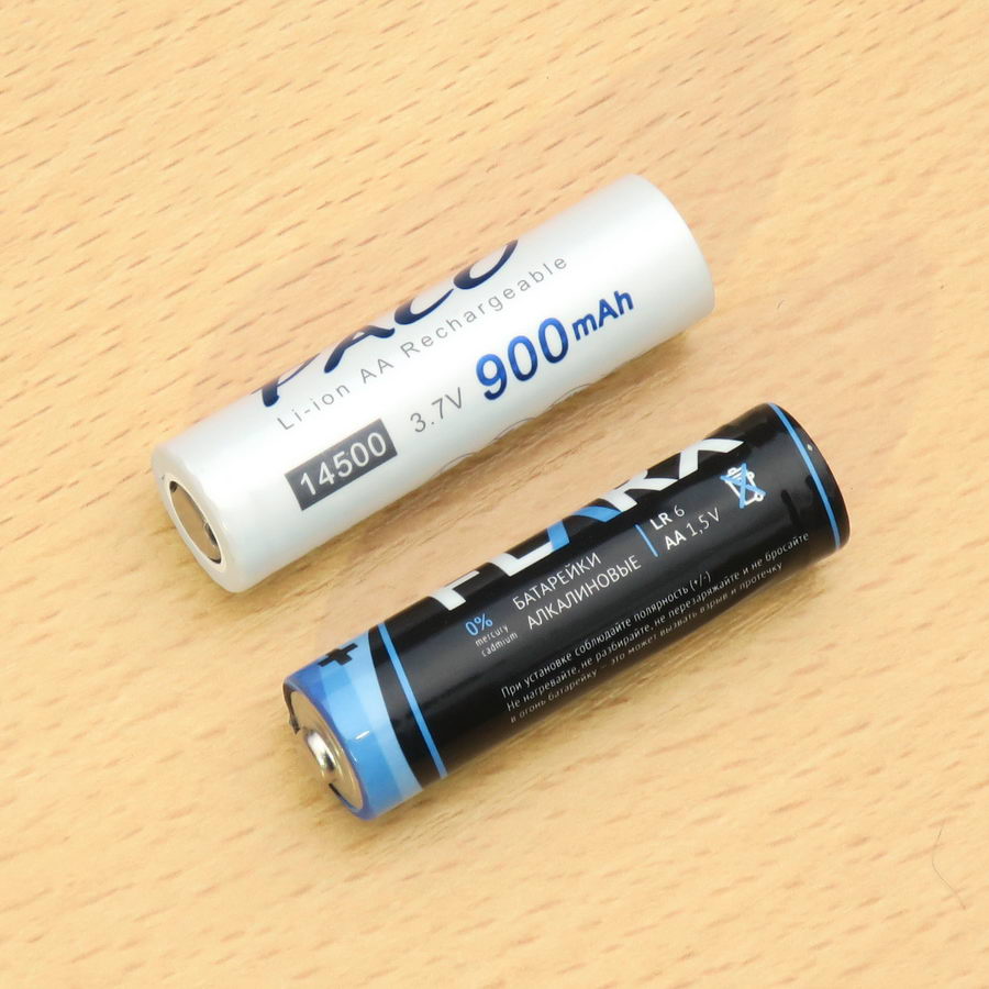 Батарея AA - аккумулятор 14500 (диаметр 14 мм, длина 50 мм);