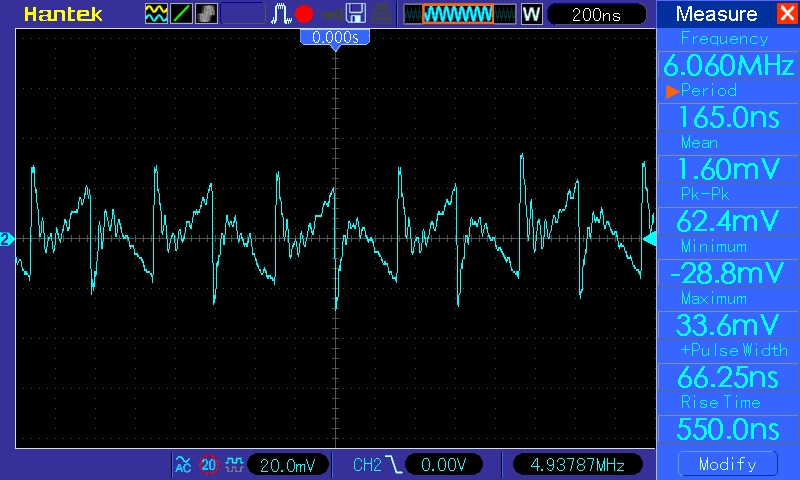 Сначала посмотрим на импульсы на выходе чипа - просто для оценки частоты преобразования:
