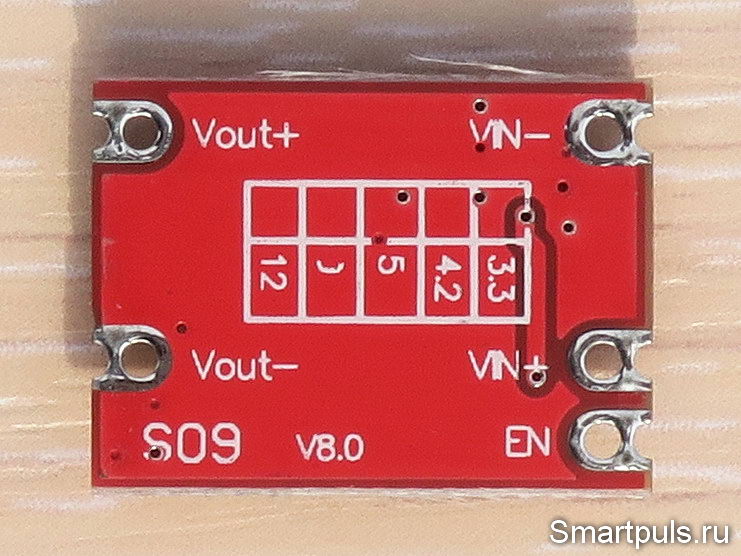 В таблице точкой должно быть обозначено номинальное напряжение выхода, но в данном экземпляре её поставить забыли. :) Тестируемая плата имеет номинал 3.3 В.