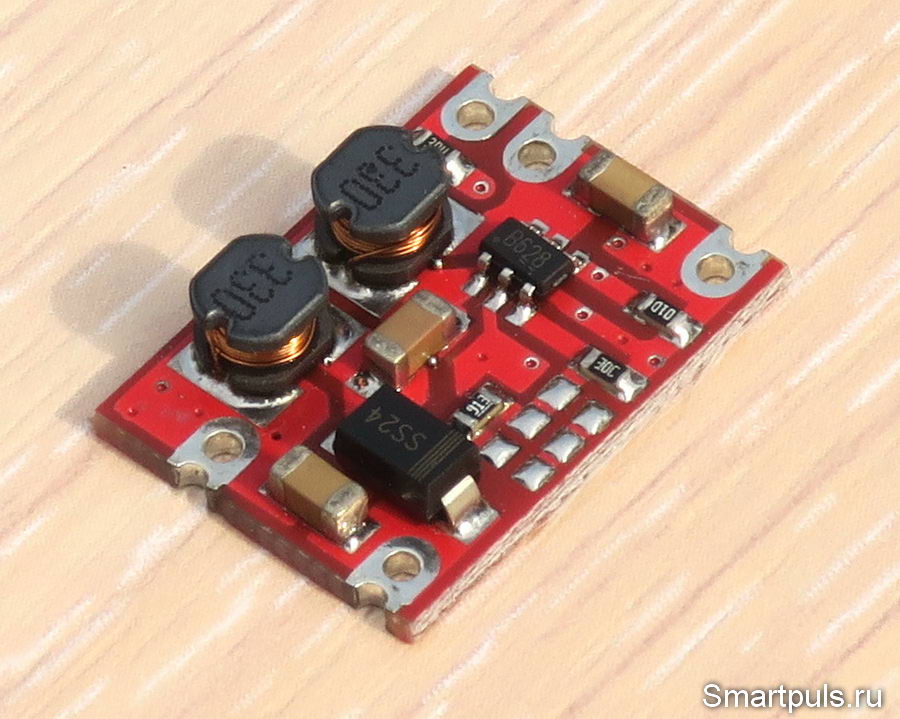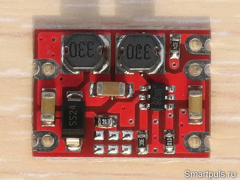 В тестируемом DC-DC преобразователе применён чип SDB628 (datasheet) - практически точный клон популярного MT3608. На данном чипе могут быть построены преобразователи как с плавной настройкой выходного напряжения, так и с фиксированной. Тестируемый преобразователь имеет фиксированную настройку выходного напряжения (3.3 В).