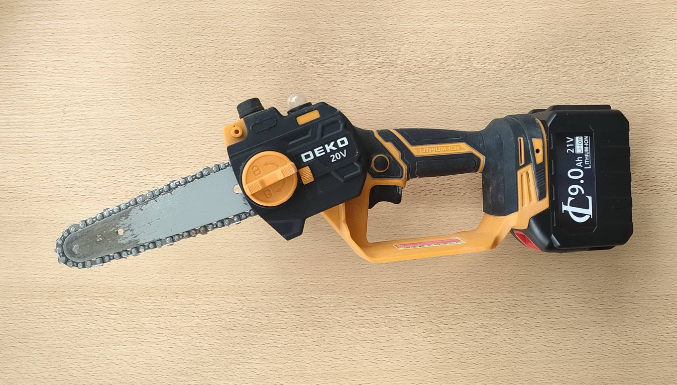 Затем была протестирована работа с цепной электропилой-сучкорезом Deko.
