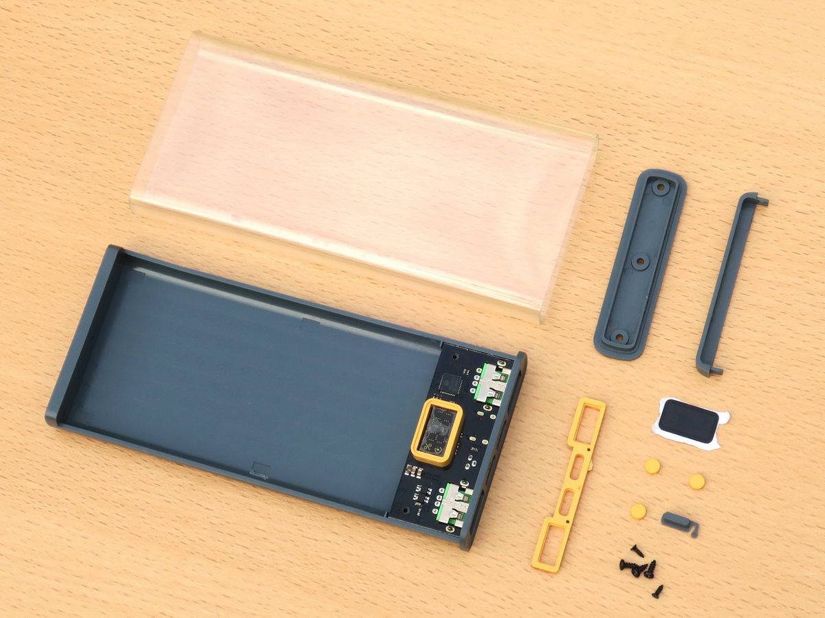 Комплект состоит из основной части корпуса (прозрачной пластиковой трубы прямоугольного сечения), мелких корпусных деталей и платы контроллера.