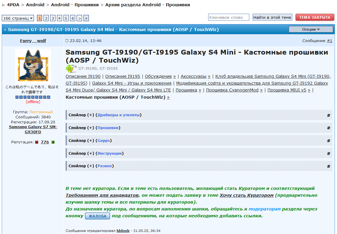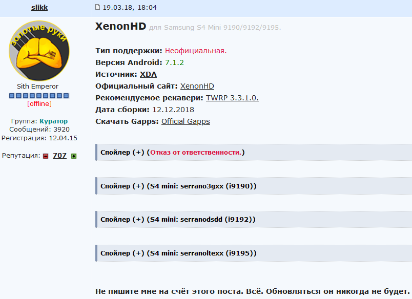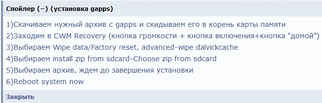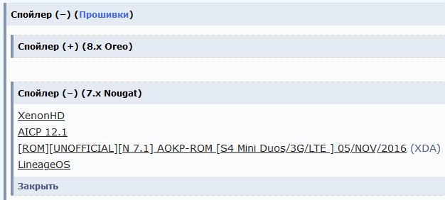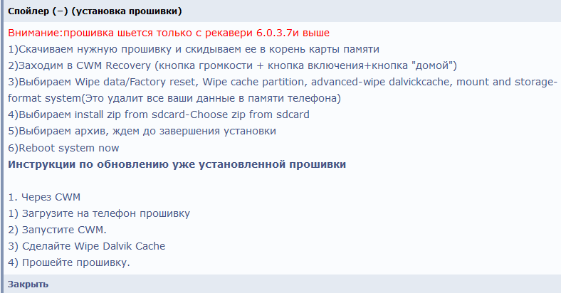 Теперь на той странице форума 4PDA, с которой были начаты все работы, раскрываем страницу и спойлер с инструкцией по установке прошивки: