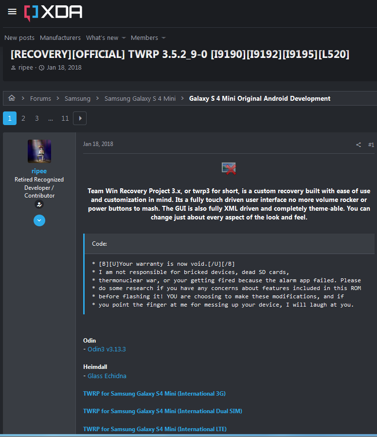 Я выбрал первую из упомянутых прошивок (XenonHD). Иду по этой ссылке.