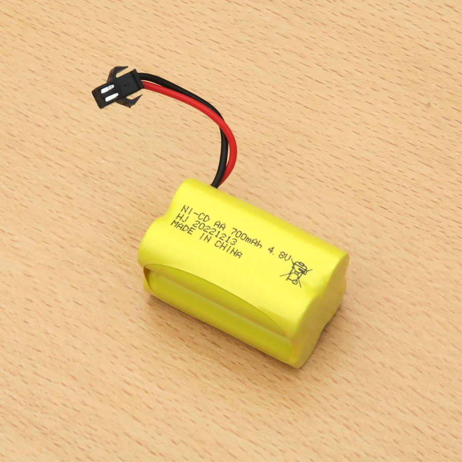 этой статье. 13. Заменяем никель-кадмиевый аккумулятор в электромеханических игрушках на аккумулятор из вейпаНикель-кадмиевые аккумуляторы - тяжелы, а срок их службы - невелик. Когда они исчерпают свой ресурс, есть прямой смысл заменить их на аккумуляторы из вейпов (один или несколько, соединённых параллельно). Так выглядит типичный никель-кадмиевый аккумулятор из электромеханической игрушки: Чтобы литиевый аккумулятор можно было использовать в игрушке и заряжать тем же зарядным устройством, которое заряжало никелевый аккумулятор, к литиевому аккумулятору надо припаять плату защиты и кабель от использованного никелевого аккумулятора. Вот как выглядит завешенная конструкция: