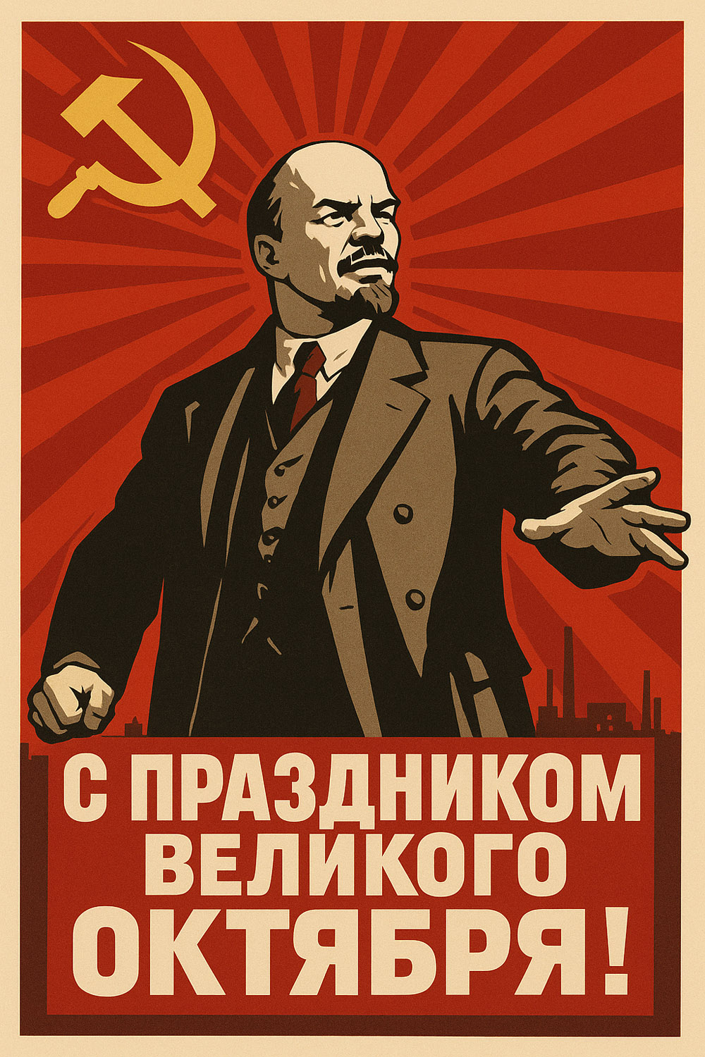 граждан со 108-й годовщиной Октябрьской Революции плакатом, созданным