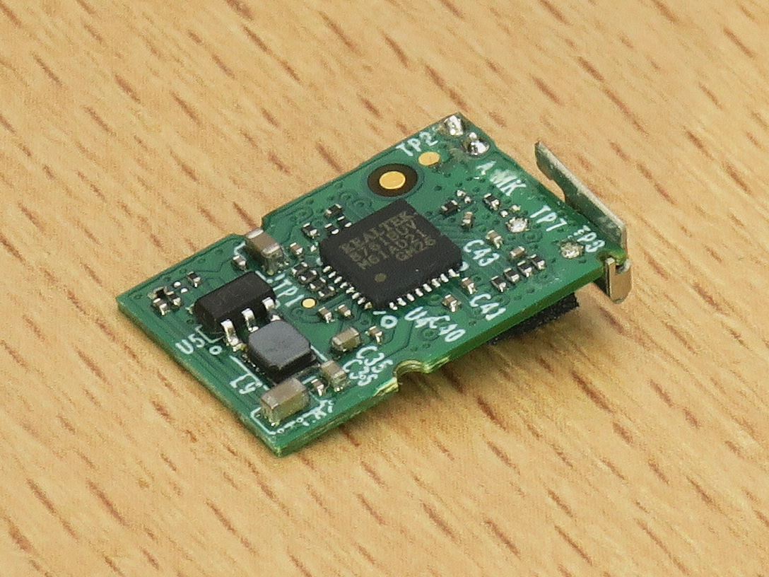 Здесь видим главный чип (Realtek 8761BUV), кучу мелкой обвязки и подсистему питания, включающую чип синхронного понижающего DC-DC преобразователя с маркировкой bPETF и индуктивность вблизи левого нижнего угла платы.