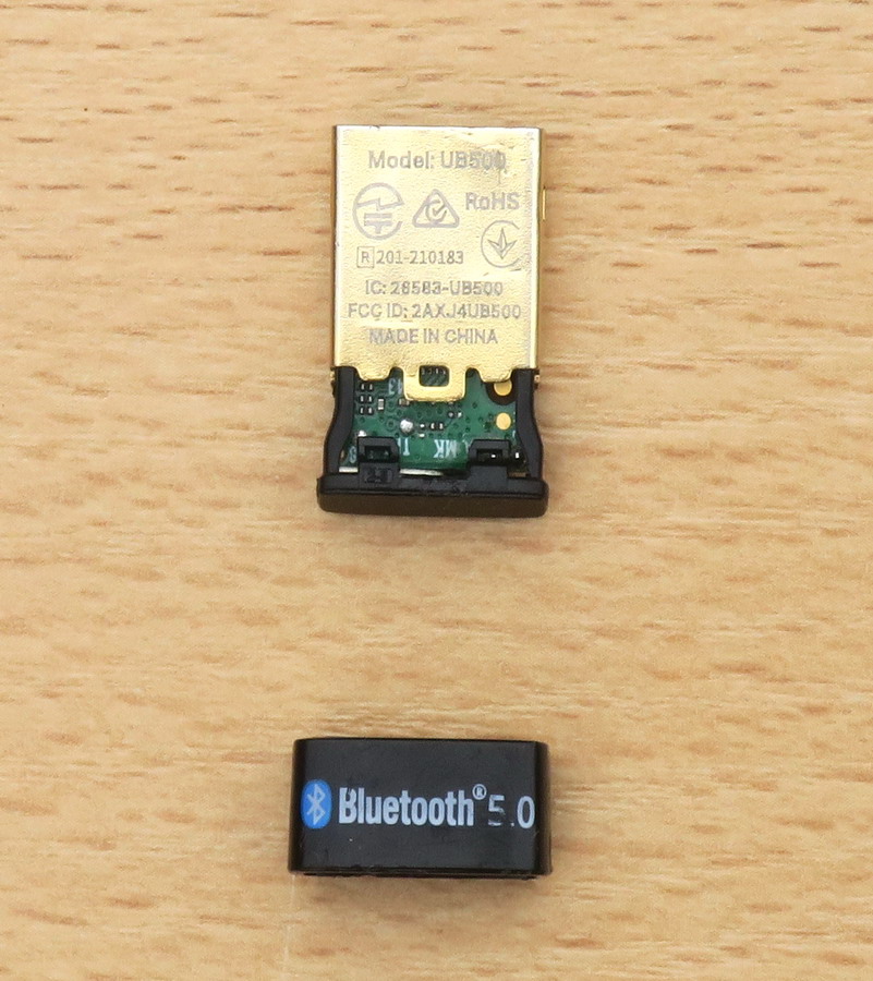 На первый взгляд, единственное место, где может располагаться электроника этого Bluetooth-адаптера, - это его чёрная "ручка" с надписью "Bluetooth 5.0".